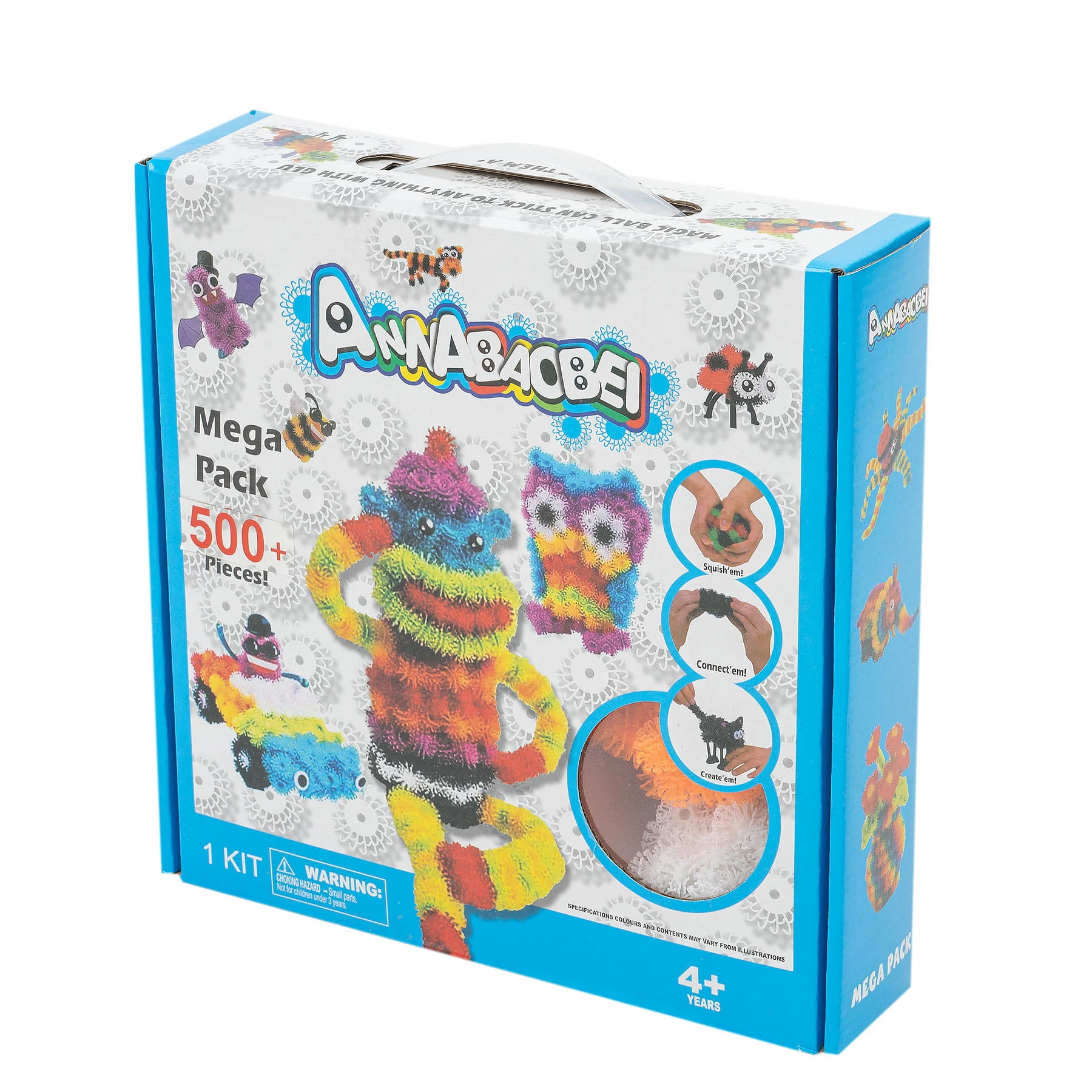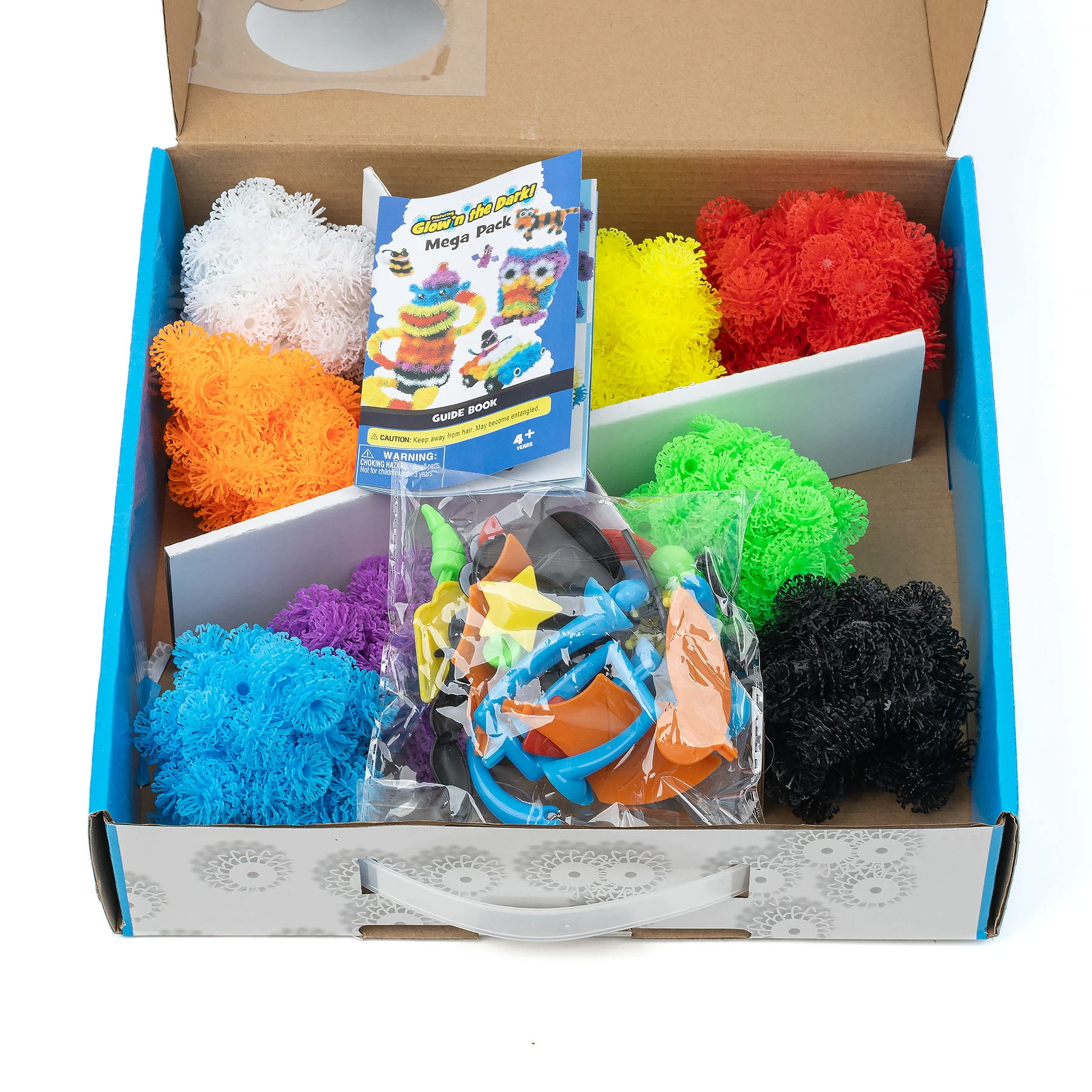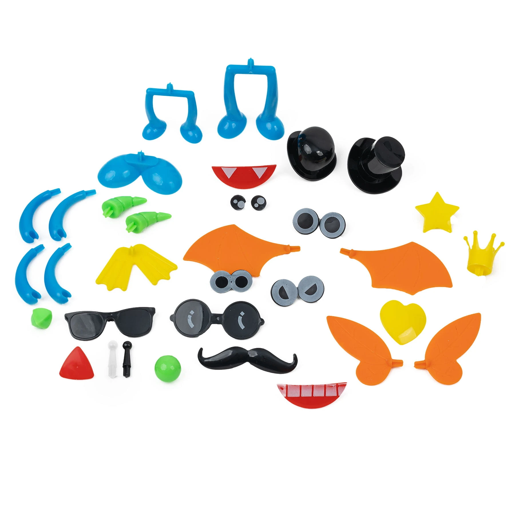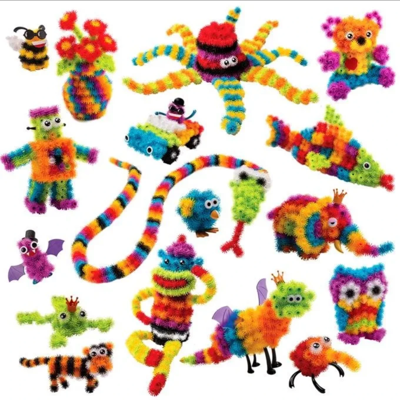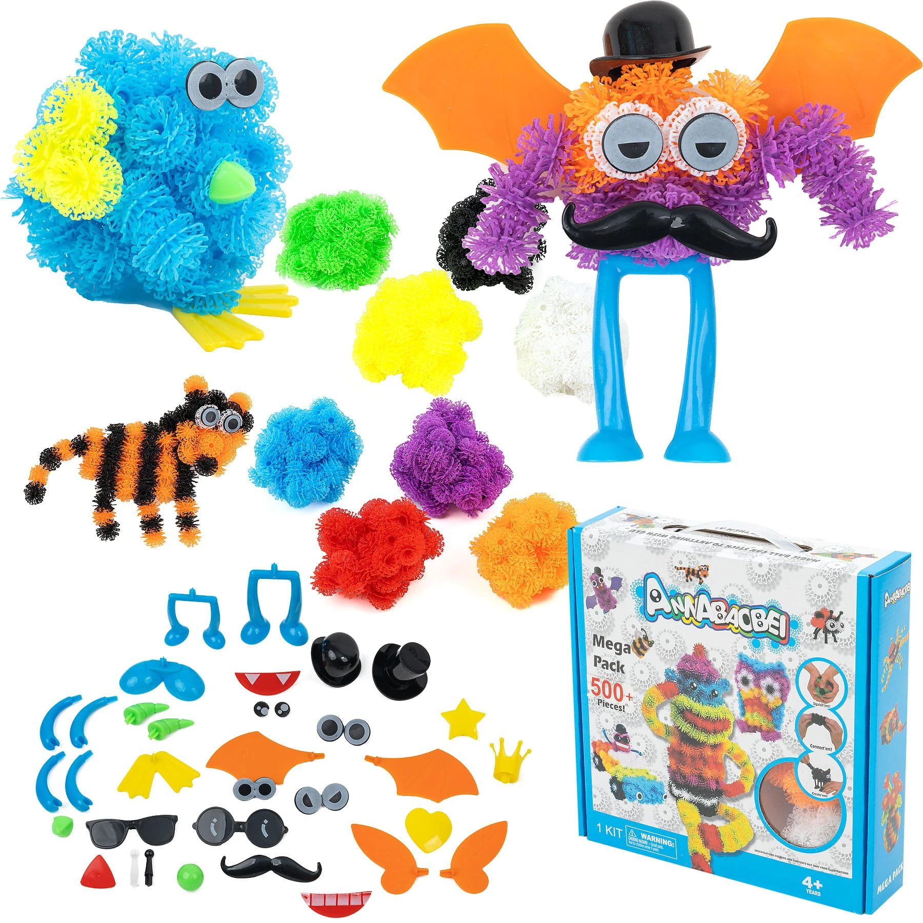 W zestawie znajdują się kolorowe rzepy w ośmiu kolorach wraz z akcesoriami, które po wetknięciu w rzepy nadają charakteru stworzonym postaciom.