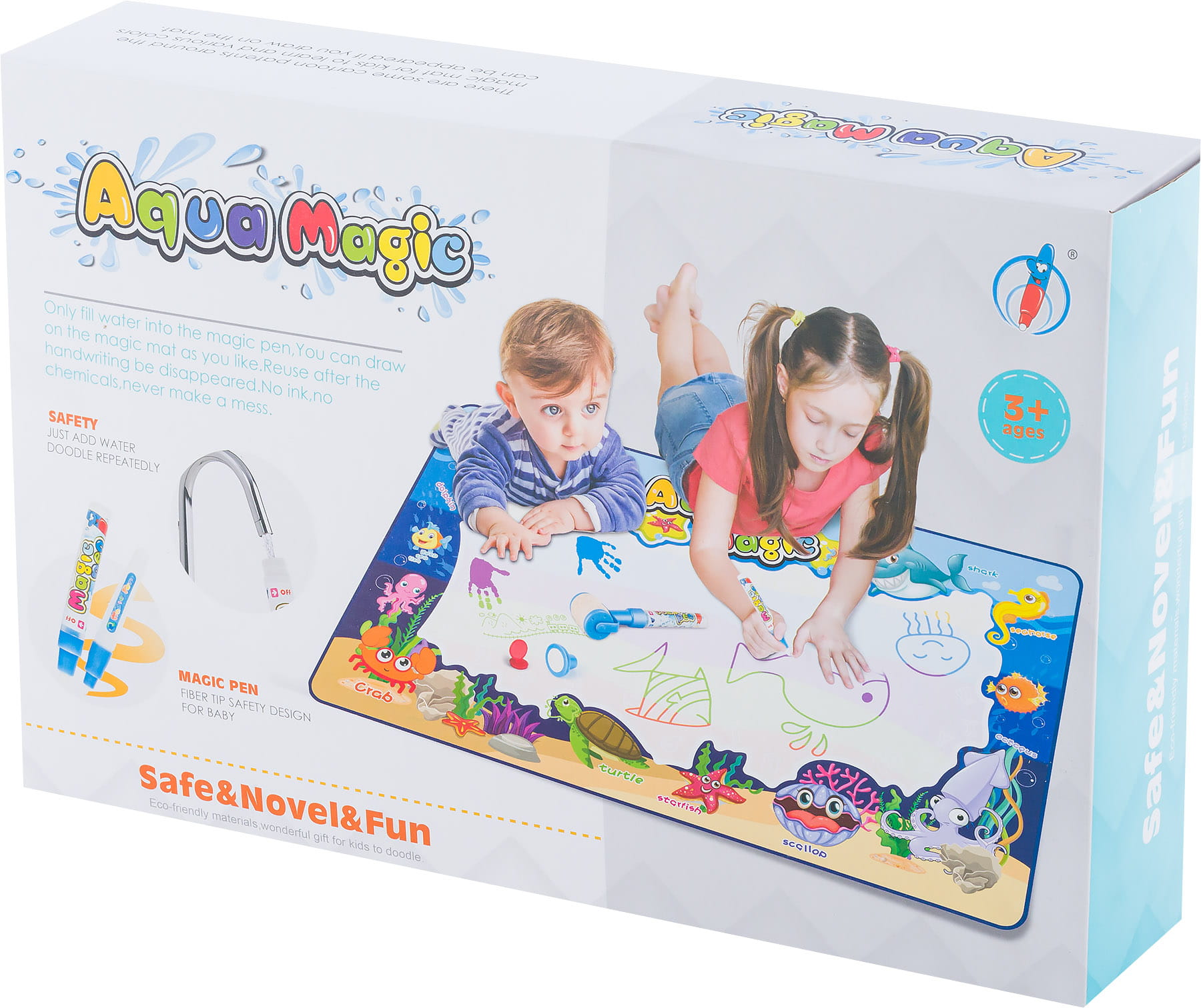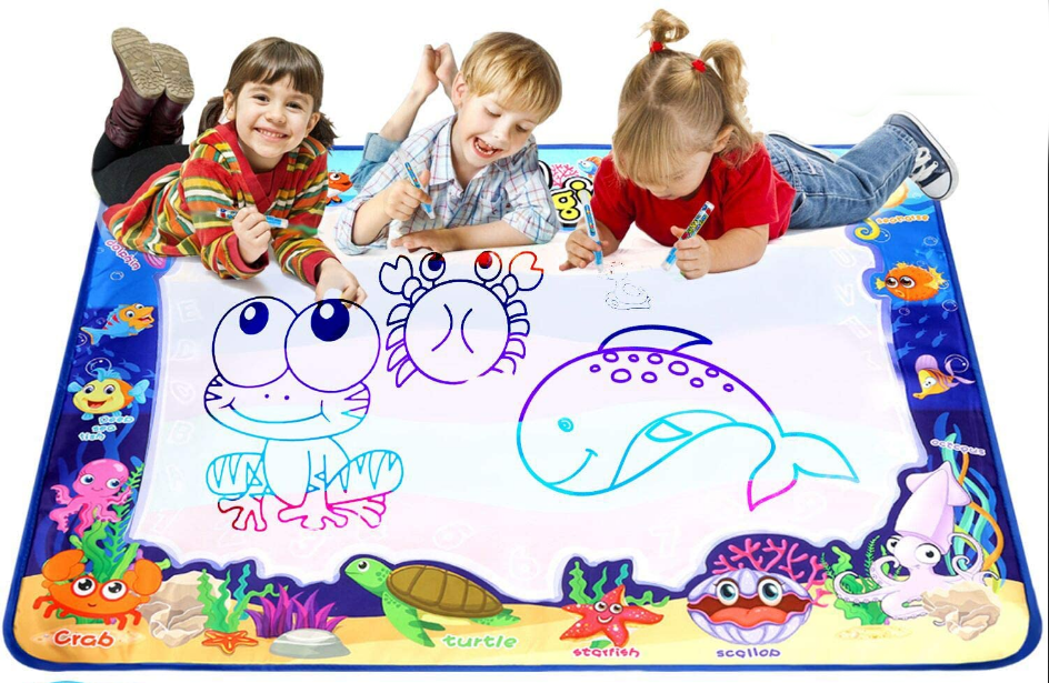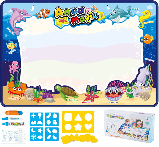 Ogromny zestaw do malowania wodą na magicznej macie będzie idealnym prezentem dla każdego małego artysty. Mata jest produktem wielokrotnego użytku który zapewni dzieciom długie godziny fantastycznej zabawy.