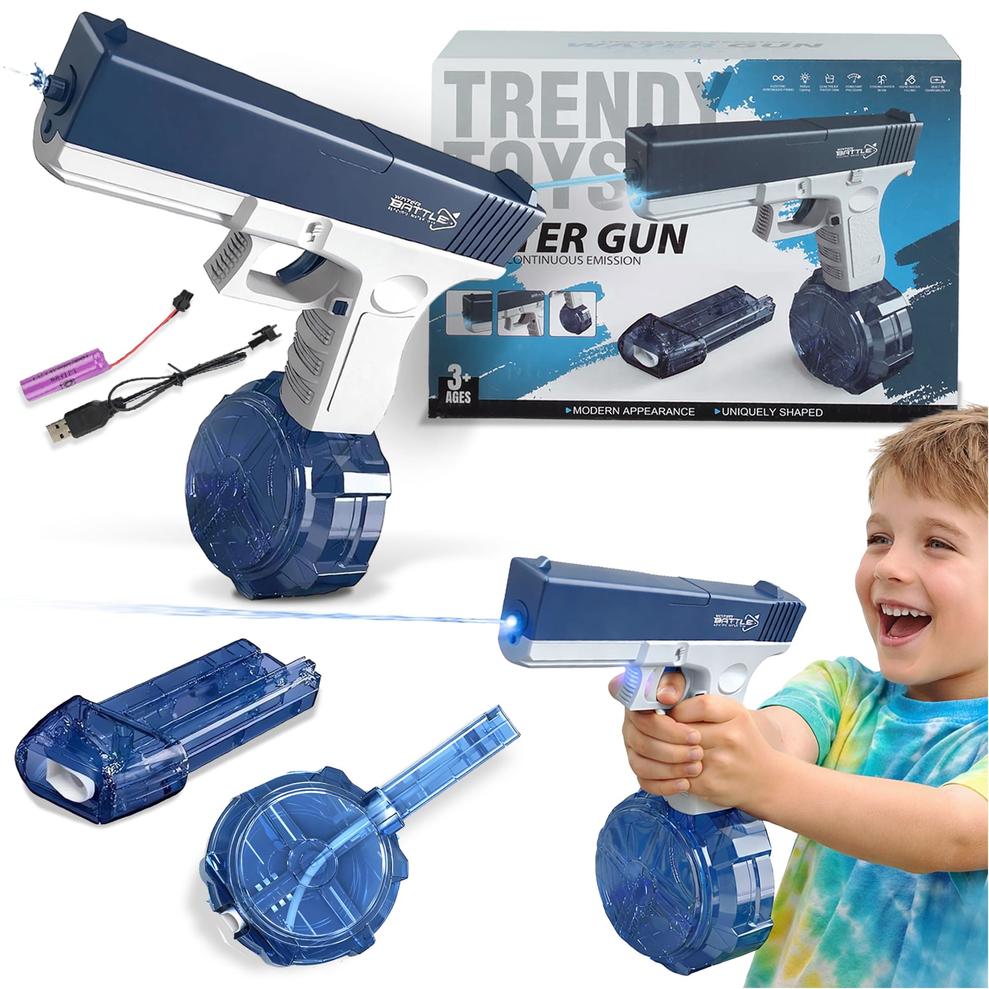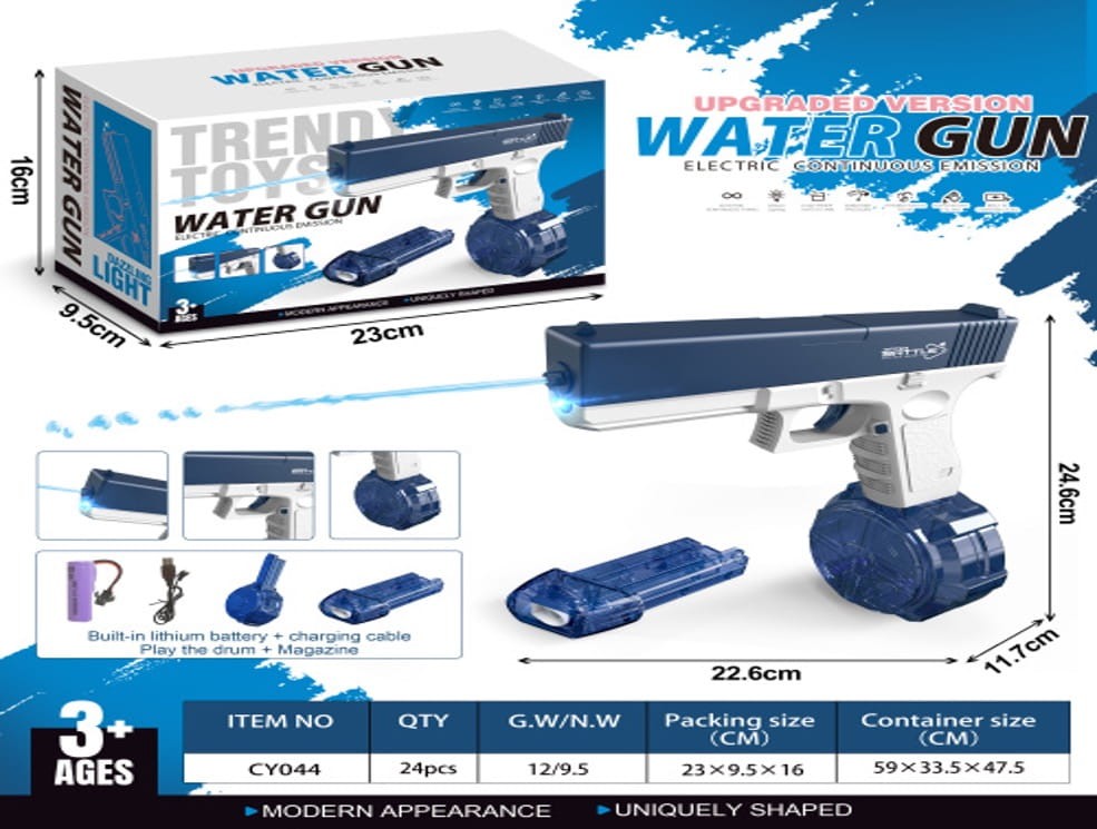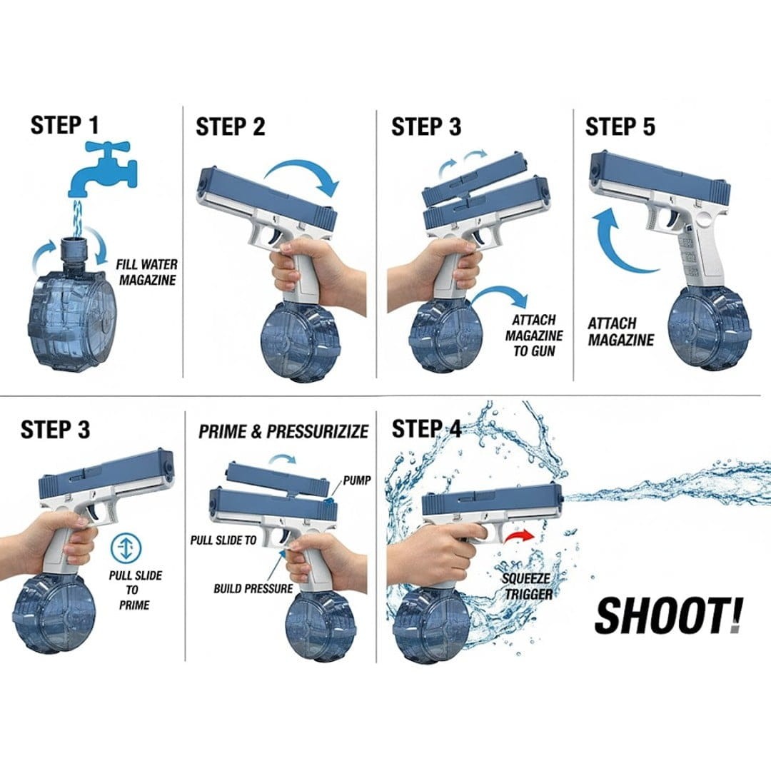 Zapomnij o tradycyjnych psikawkach! Ten elektryczny pistolet na wodę zapewnia ciągły strumień wody bez konieczności ręcznego pompowania. Wystarczy nacisnąć spust i rozpocząć wodną bitwę